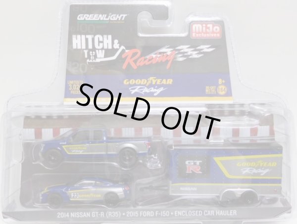 2017 GREENLIGHT - HITCH & TOW RACING "MIJO EXCLUSIVE" 【2014 NISSAN GT-R(R35)/2015 FORD F-150/ENCLOSED CAR HAULER】 BLUE/RR (GOOD YEAR)(3024個限定)