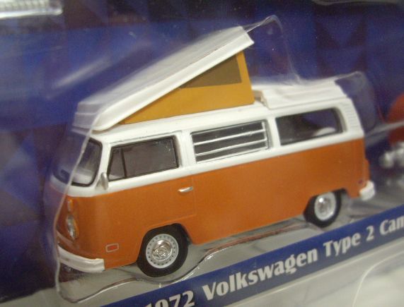 2016 GREENLIGHT - HITCH & TOW MJ TOYS EXCLUSIVE 【1972 VOLKSWAGEN TYPE 2 CAMPER AND TEARDROP TRAILER】 ORANGE/RR