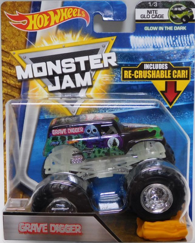 2018 MONSTER JAM includes RE-CRUSHABLE CAR! 【GRAVE DIGGER】 BLACK (NITE GLO CAGE)